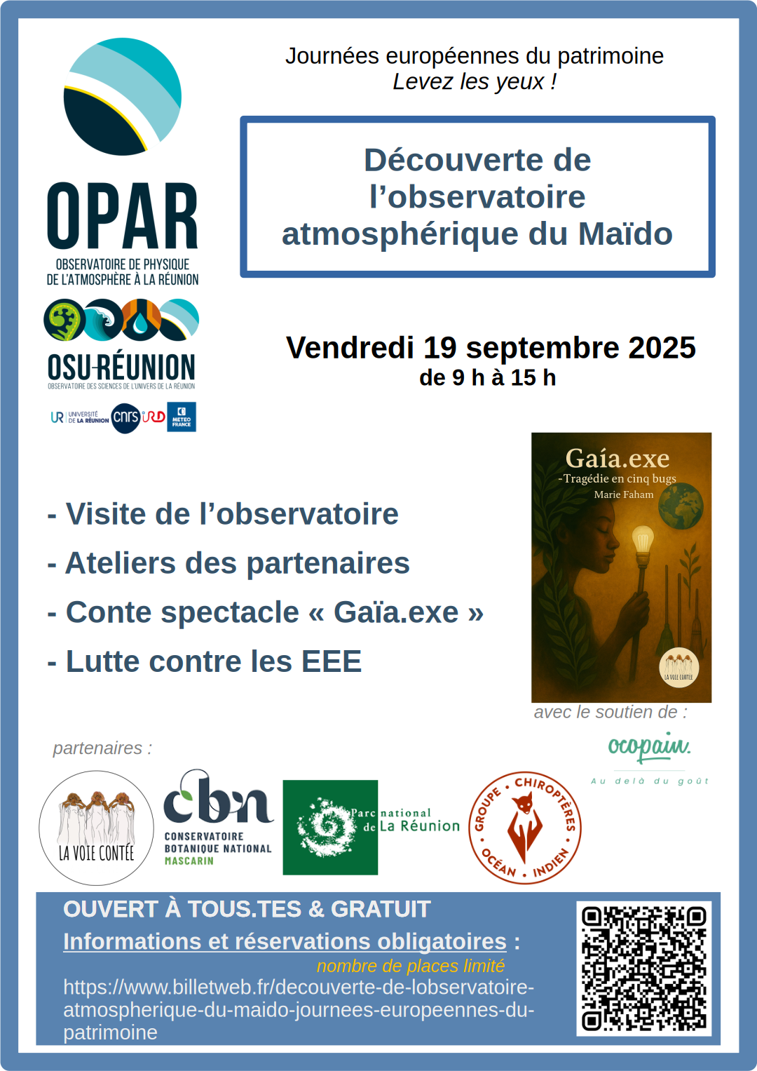 Ce samedi 23 août 2025, l’OPAR (Observatoire de Physique de l’Atmosphère à La Réunion) a accueilli sur son site du Maïdo un chantier de plantation du Collectif 5000 PIE D’BWA. Ce chantier a été accompagné par le Parc National de La Réunion et le Conservatoire Botanique National Mascarin (CBNM). Cette journée a réunit 30 personnes.